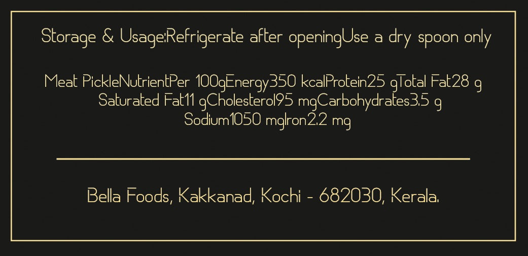 >DELICIOUSLY SPICED MEAT PICKLE: Made With fresh, tender, cleaned pieces of high-quality meat and a Perfect Blend of Traditional Spices for a Bold, Flavorful Taste in Every Bite.